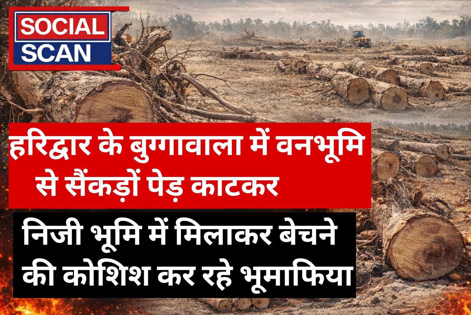 हरिद्वार के बुग्गावाला में वन भूमि के सैंकड़ों पेड़ का हुआ अवैध कटान, अब उस बेशकीमती भूमि को भूमाफियायों द्वारा सांठ-गांठ कर अवैध कालोनी में मिलाकर बेचने की तैयारियां!