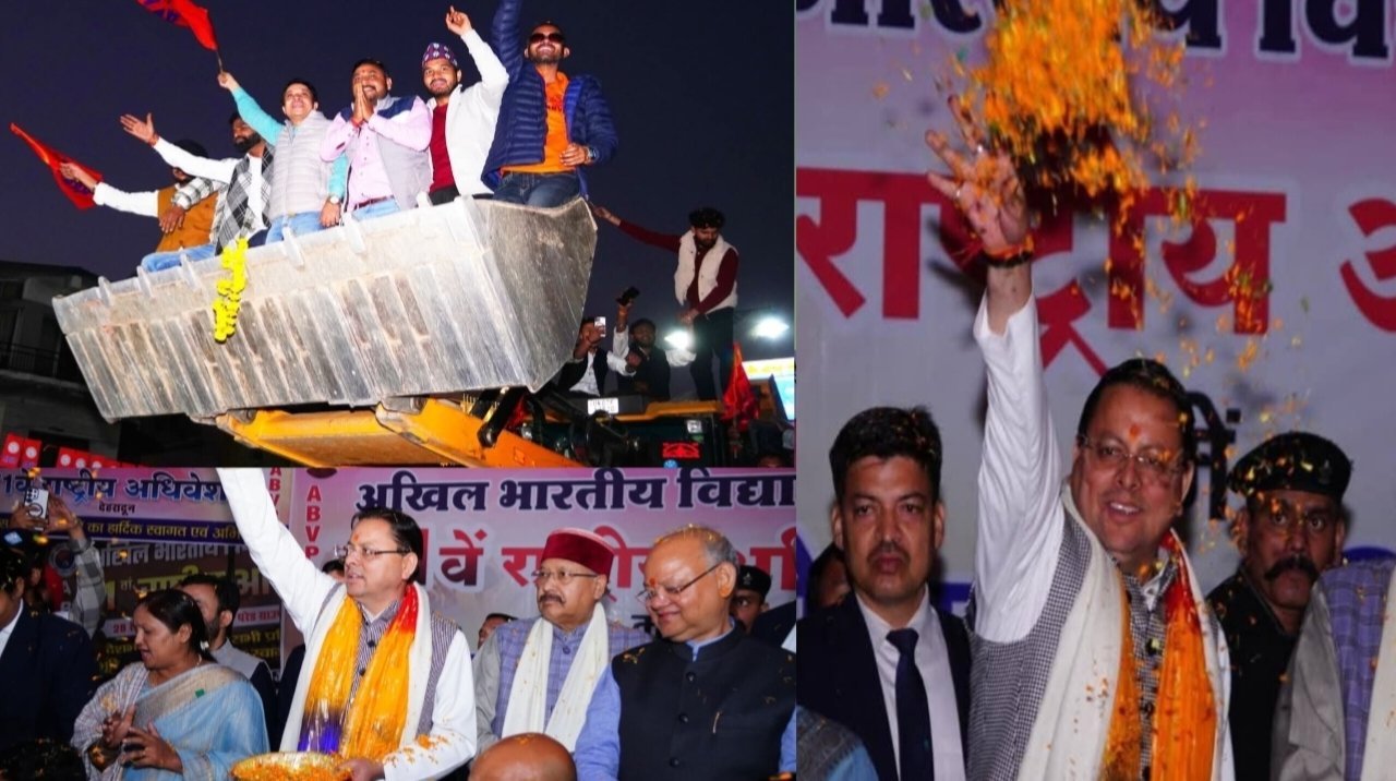 मुख्यमंत्री पुष्कर सिंह धामी ने गांधी पार्क, देहरादून में आयोजित Akhil Bharatiya Vidyarthi Parishad (ABVP) के 71वें राष्ट्रीय अधिवेशन में देशभर से पहुंचे प्रतिनिधियों एवं कार्यकर्ताओं का पदयात्रा में पुष्प वर्षा कर स्वागत एवं अभिनंदन किया। आदरणीय प्रधानमंत्री Narendra Modi जी के कुशल एवं दूरदर्शी नेतृत्व में आज देश का युवावर्ग नई ऊर्जा के साथ आगे बढ़ रहा है, राष्ट्रवाद की भावना और अधिक प्रबल हुई है और युवाशक्ति विकास की धुरी बनकर भारत को वैश्विक नेतृत्व की ओर अग्रसर कर रही है। छात्र राजनीति की शुरुआत एबीवीपी से होने के कारण संगठन के प्रति आत्मीयता और योगदान का यह भाव आज भी उतना ही दृढ़ है। एबीवीपी के विभिन्न पदों पर सेवा का अवसर पाकर सदैव राष्ट्रीय विचार, अनुशासन और संगठनात्मक कार्यसंस्कृति से सीखने का सौभाग्य मिला है। इस अवसर पर माननीय कैबिनेट मंत्री Satpal Maharaj जी, माननीय दायित्वधारी Suresh Bhatt जी समेत अन्य गणमान्य जन उपस्थित रहे।