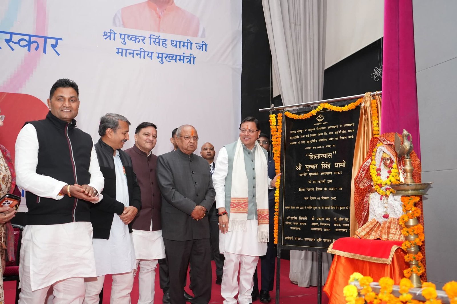इस अवसर पर ₹9.05 करोड़ की लागत से बनने वाले आयुक्त दिव्यांगजन उत्तराखण्ड, उत्तराखण्ड बहुउद्देशीय वित्त एवं विकास निगम लि. तथा आईटी सेल, समाज कल्याण के बहुउद्देशीय कार्यालय भवन का शिलान्यास भी किया गया, जो आने वाले समय में दिव्यांगजन सेवाओं को और अधिक सुदृढ़ व सुव्यवस्थित बनाएगा।