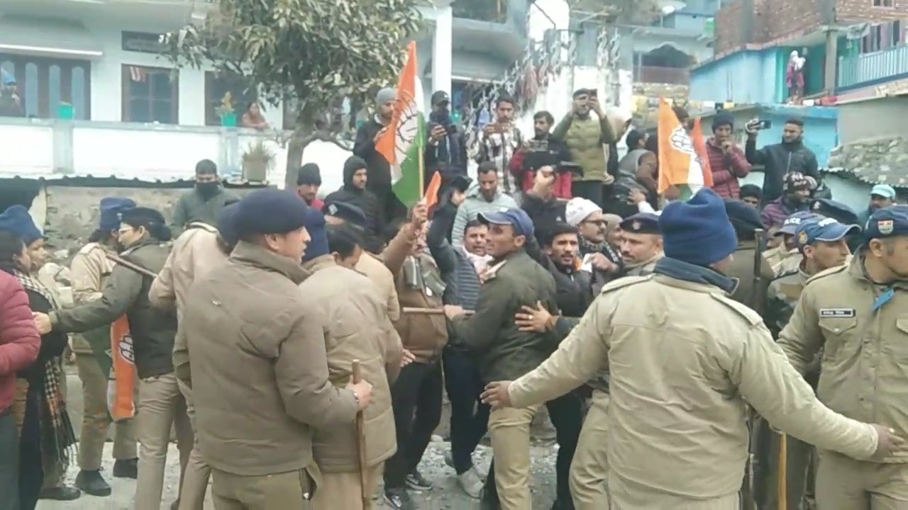 खबर उत्तरकाशी से जनपद भ्रमण पर पहुंचे प्रदेश के कृषि मंत्री गणेश जोशी और भाजपा सरकार का कांग्रेस पार्टी के कार्यकर्ताओं ने जोरदार विरोध किया। कांग्रेस पदाधिकारियों और कार्यकर्ताओं ने काले झंडे दिखाकर मंत्री के काफिले के खिलाफ नारेबाजी की और सरकार की नीतियों पर तीखा हमला बोला। जानकारी के अनुसार कृषि मंत्री गणेश जोशी उत्तरकाशी के गंगोरी क्षेत्र में आयोजित “सरकार जन-जन के द्वार” कार्यक्रम में शिरकत करने पहुंचे थे। कार्यक्रम संपन्न होने के बाद जब मंत्री और स्थानीय विधायक का काफिला वापस लौट रहा था, तभी गंगोत्री नेशनल हाईवे पर गंगोरी के पास पहले से मौजूद कांग्रेस कार्यकर्ताओं ने पार्टी झंडों के साथ काफिले को काले झंडे दिखाए। इस दौरान कांग्रेस कार्यकर्ताओं ने भाजपा सरकार के खिलाफ जमकर नारेबाजी की और सरकार को खरी-खोटी सुनाई। उनका आरोप था कि भाजपा सरकार जनता से जुड़े मुद्दों पर विफल रही है और जमीनी स्तर पर लोगों की समस्याओं का समाधान नहीं हो पा रहा है। विरोध प्रदर्शन के चलते कुछ समय के लिए क्षेत्र में अफरा-तफरी का माहौल भी बना रहा। हालांकि मौके पर मौजूद प्रशासन और पुलिस बल ने स्थिति को संभालते हुए किसी तरह के टकराव की स्थिति नहीं बनने दी और काफिले को सुरक्षित रवाना कराया। विरोध के दौरान किसी प्रकार की अप्रिय घटना की सूचना नहीं है। कांग्रेस नेताओं ने चेतावनी दी कि यदि सरकार ने जनता की समस्याओं की अनदेखी जारी रखी तो आने वाले समय में विरोध को और तेज किया जाएगा।