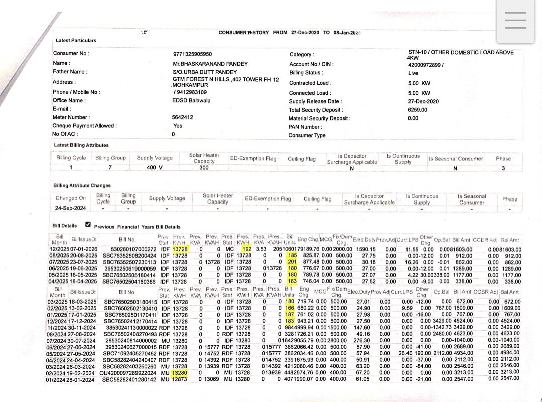 उपभोक्ता भास्करानंद पांडे का कहना है कि सामान्य दरों के अनुसार 193 यूनिट की खपत का बिल लगभग 700 से 800 रुपये के आसपास होना चाहिए, लेकिन जारी बिल की राशि असामान्य रूप से अधिक है। उन्होंने इसे गंभीर त्रुटि बताते हुए आपत्ति दर्ज कराई है।