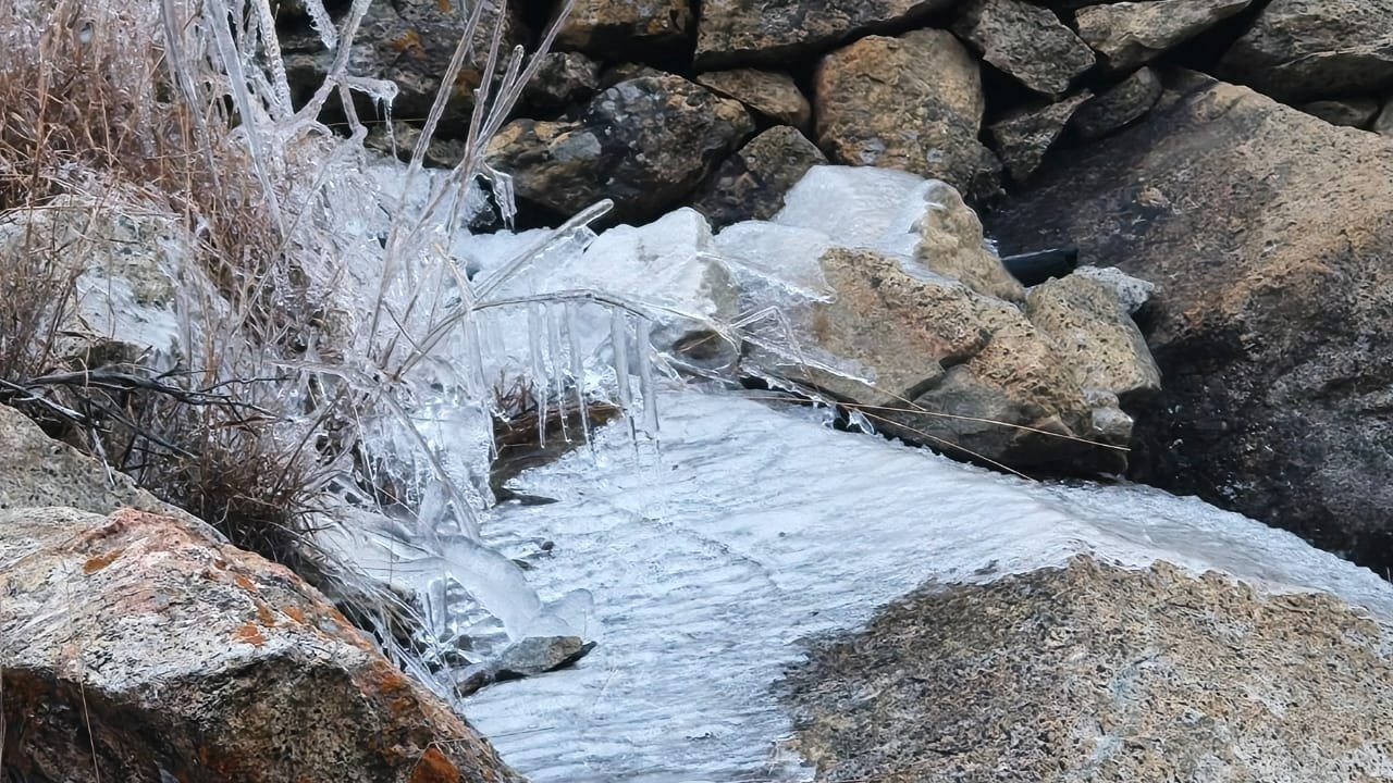 रास्तों में इकठ्ठा हुआ पानी जमकर बर्फ बन रहा है और पेयजल के पाइपों , झरनों में पानी जम रहा है। नवंबर माह में जबरदस्त ठंड ने दस्तक दी है।