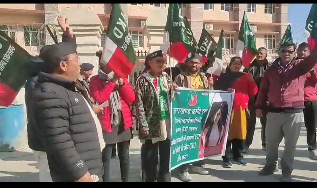 अंकिता हत्याकांड में वीआईपी का नाम उजागर करने और मामले की सीबीआई जांच की मांग को लेकर उत्तराखंड क्रांति दल (UKD) ने मंडल मुख्यालय पौड़ी में रैली निकालकर जोरदार प्रदर्शन किया। प्रदर्शनकारियों ने प्रदेश सरकार के खिलाफ नारेबाजी करते हुए अंकिता को न्याय दिलाने की मांग उठाई। इस दौरान उत्तराखंड क्रांति दल के केंद्रीय उपाध्यक्ष आशुतोष नेगी ने कहा कि देवभूमि उत्तराखंड को मौजूदा सरकार लगातार कलंकित करने का काम कर रही है। उन्होंने आरोप लगाया कि पूरे देश में अंकिता को न्याय दिलाने के लिए आंदोलन चल रहा है, लेकिन प्रदेश सरकार अपने चहेतों को बचाने में लगी हुई है। नेगी ने कहा कि अंकिता को न्याय मिलना सिर्फ एक परिवार का मुद्दा नहीं है, बल्कि इसका सीधा संबंध पहाड़ की बेटियों की सुरक्षा से है। जब तक अंकिता को न्याय नहीं मिलेगा, तब तक बेटियां सुरक्षित नहीं हो सकतीं। वहीं UKD की नेत्री संतोष भंडारी ने कहा कि उत्तराखंड क्रांति दल प्रदेशभर में अलग-अलग स्थानों पर अंकिता को न्याय दिलाने के लिए प्रदर्शन कर रहा है। उन्होंने कहा कि जिस तरह का जनसमर्थन मिल रहा है, उससे साफ है कि सीबीआई जांच की मांग और मजबूत होगी। उन्होंने चेतावनी दी कि यदि जल्द सीबीआई जांच नहीं हुई तो आंदोलन को और उग्र किया जाएगा।