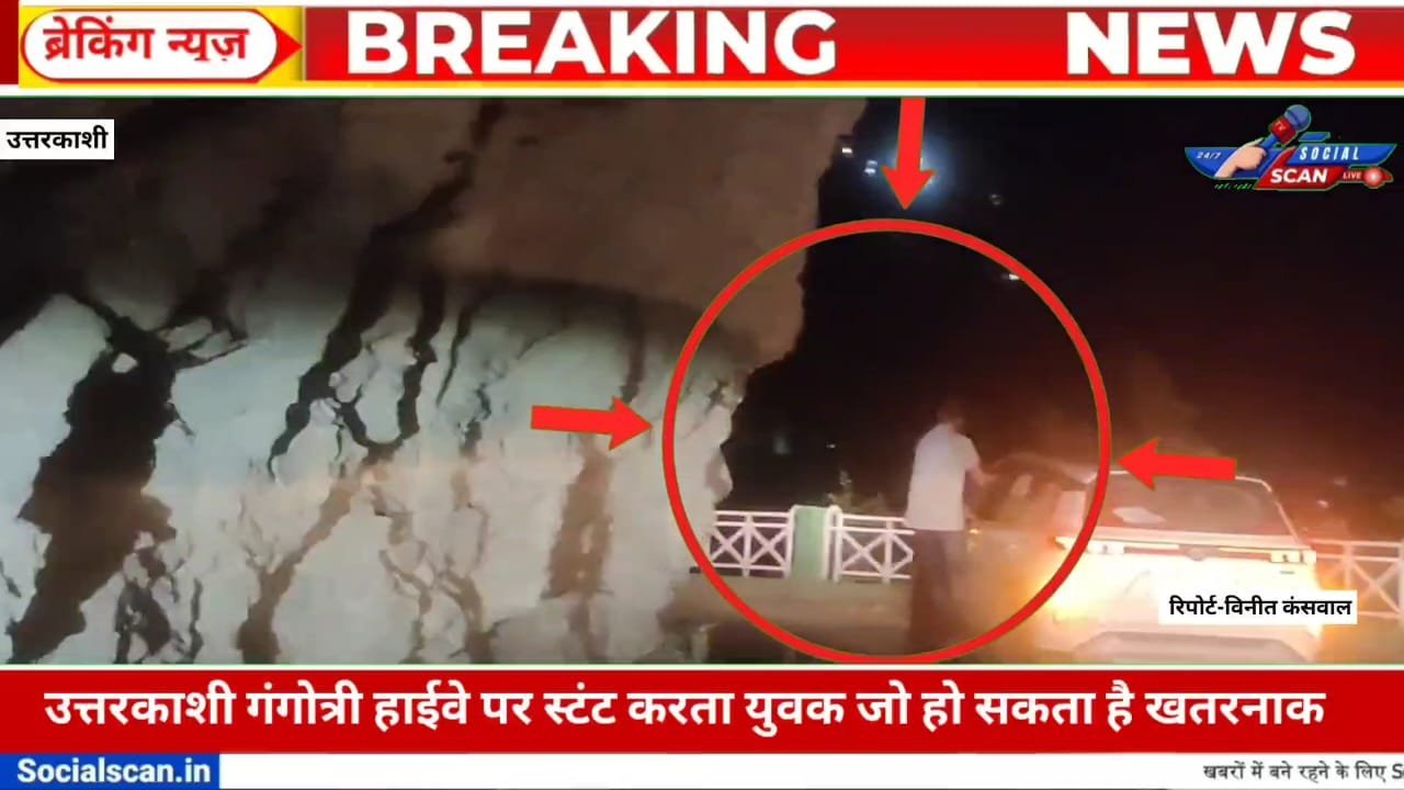 उत्तरकाशी गंगोत्री हाईवे पर स्टंड करता युवक, जो हो सकता है खतरनाक